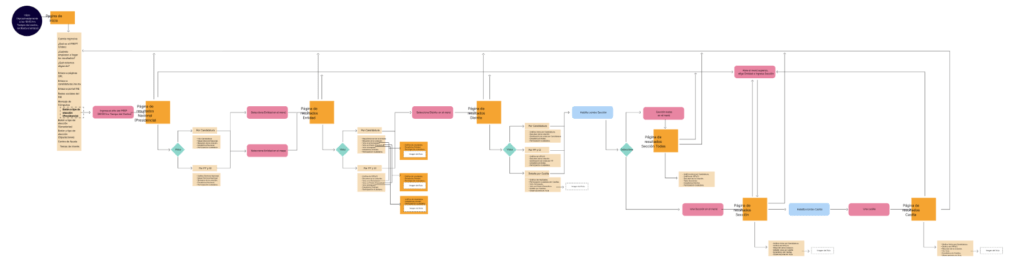 Elaboré un flujo de usuario para ilustrar los distintos caminos que los usuarios pueden tomar al navegar por las pantallas programadas para el rediseño, destacando los posibles escenarios que podrían encontrar en el camino.