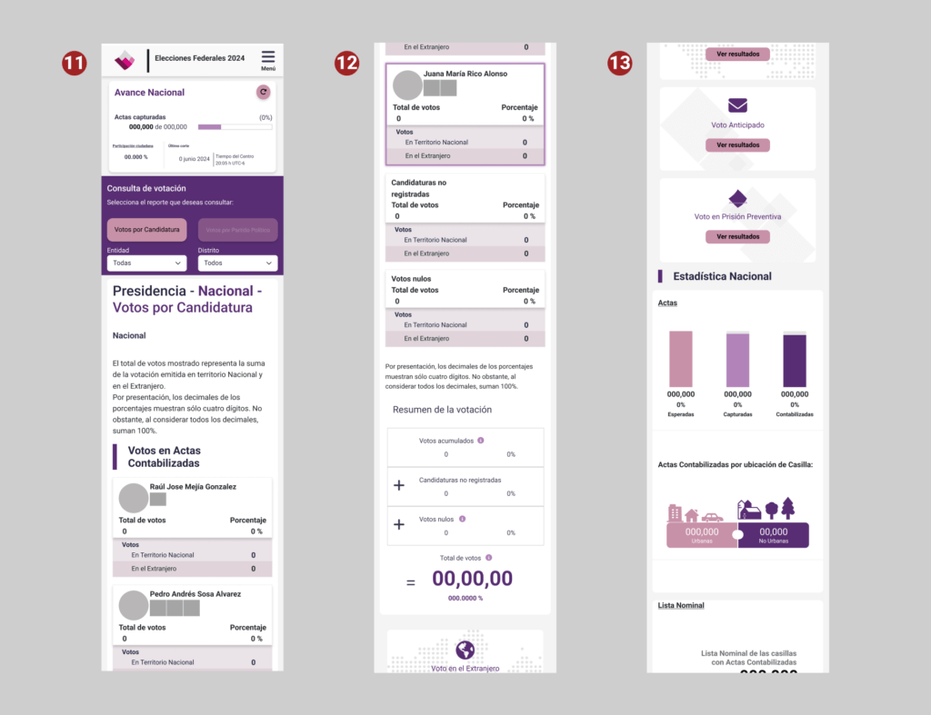 En el tiempo que estuve en el INE, trabajé en el equipo de arquitectura de información como Product Designer para ayudar a rediseñar la plataforma del Programa de Resultados Preeliminares (PREP) y mejorar cómo los ciudadanos pueden acceder a los resultados de las elecciones en tiempo real.